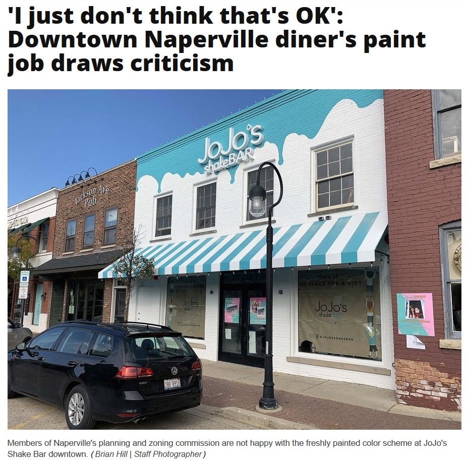 Even having an article with a headline like this might contribute to perceptions that Naperville is a snobby place. The appearance of dripping paint is a big problem for the community? Does a negative reaction welcome the new business? Is it helpful to have these conversations through a local newspaper?