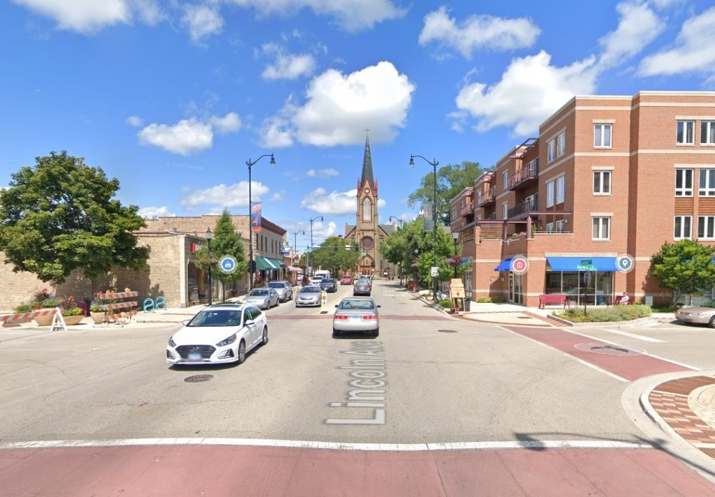 Imagine a stereotypical suburban downtown in the United States. It has two story brick buildings with storefronts on the first floor. There are some offices and places to eat. A few people walk around while cars drive past parked vehicles. There may be train tracks and a station marking the ability to commute to the big city. Not far from such a streetscape are often church buildings of various denominations and traditions.