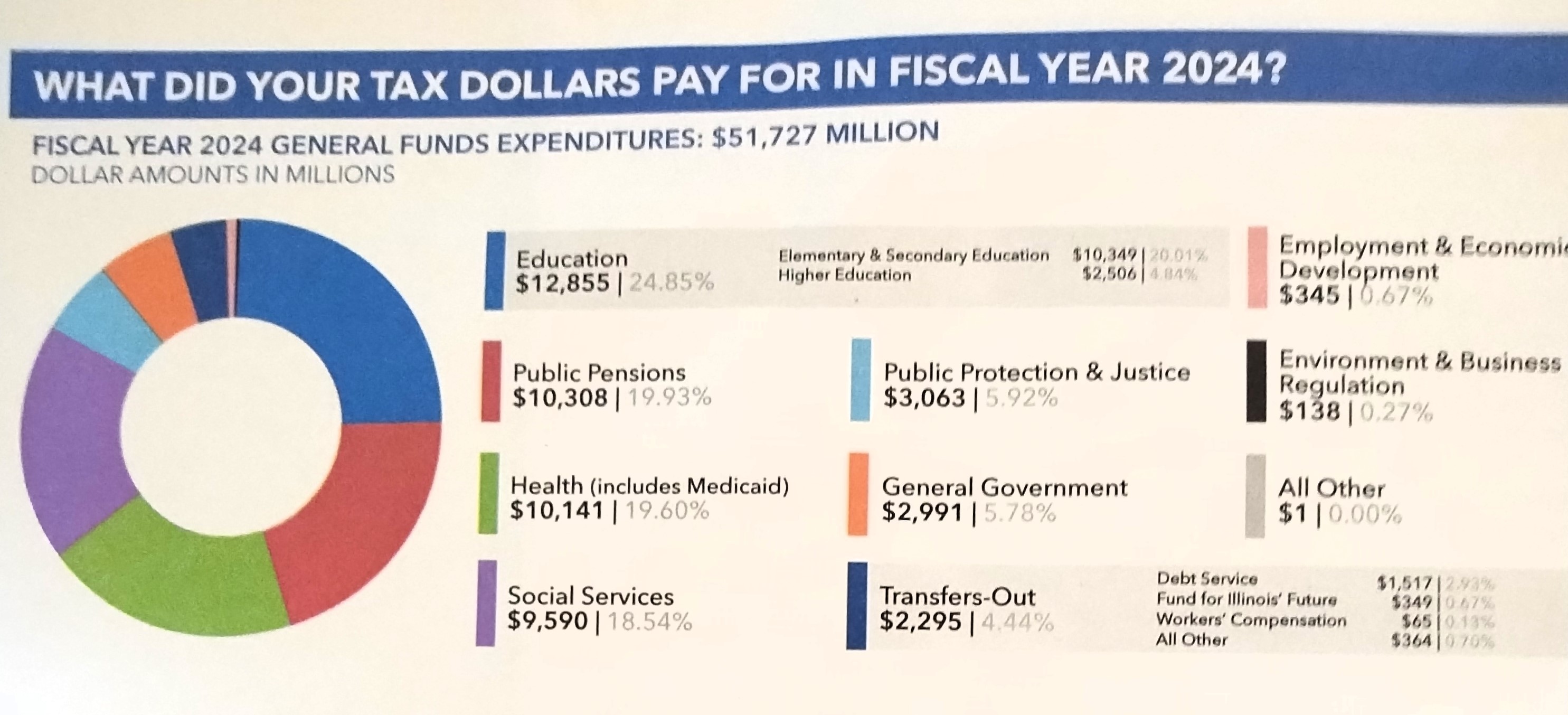 I recently received the breakdowns of where tax dollars for the State of Illinois and DuPage County went in 2024: