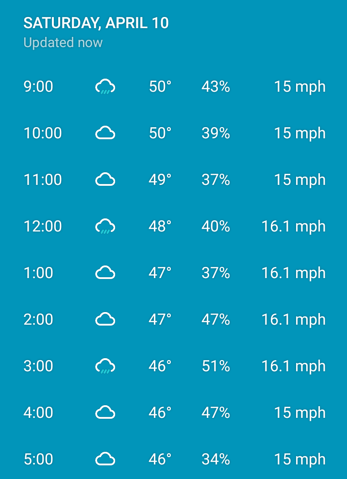 We have had multiple days recently where there is a threat of rain all day. The hourly forecast from yesterday was not unusual: