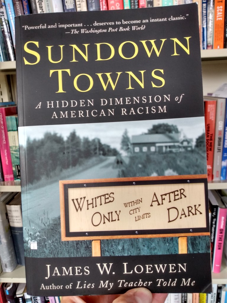 In his book, he writes, “Between 1890 and 1960, thousands of towns across the United States drove out their black populations or took steps to forbid African-Americans from living in them, creating ‘sundown towns,’” explaining that these towns “are (or were) all white by design,” and adding that, at least in part, “these facts remained hidden because of our cultural tendency to connect extreme racism with the South.”