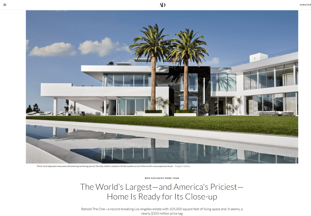Architectural Digest features images of 12 “extra-large properties.” Here is the introduction: