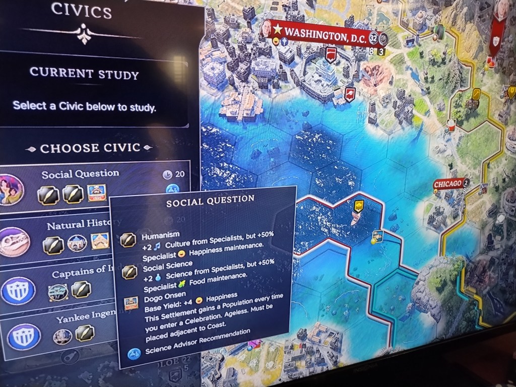 In Civilization VII, players can research and have the civic “Social Question.” Upon doing so, they gain the benefit of social science: