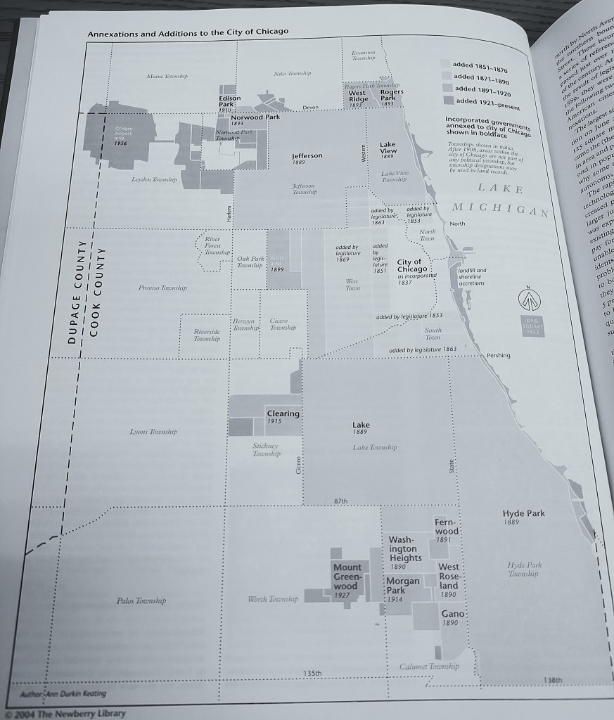 In recently reading The Working Man’s Reward: Chicago’s Early Suburbs and the Roots of American Sprawl, I noted this in a chapter on the Town of Lake which was annexed into Chicago in 1889: